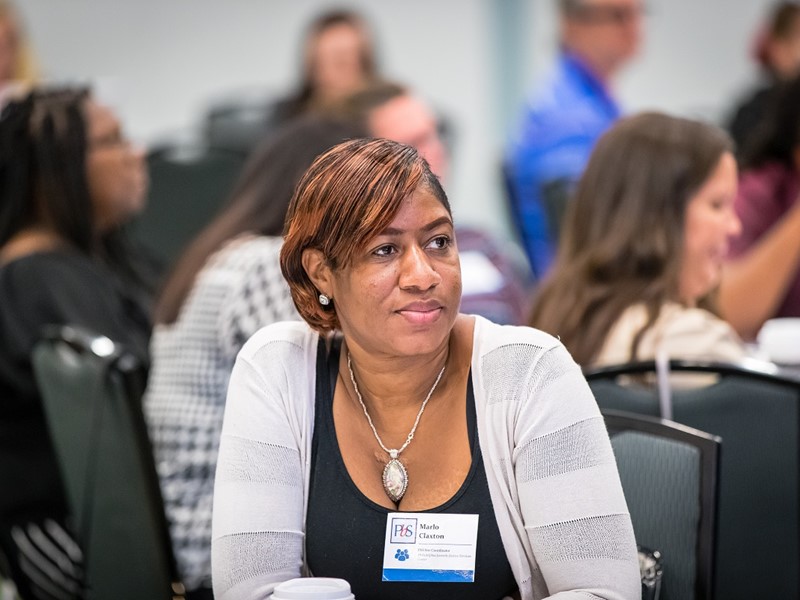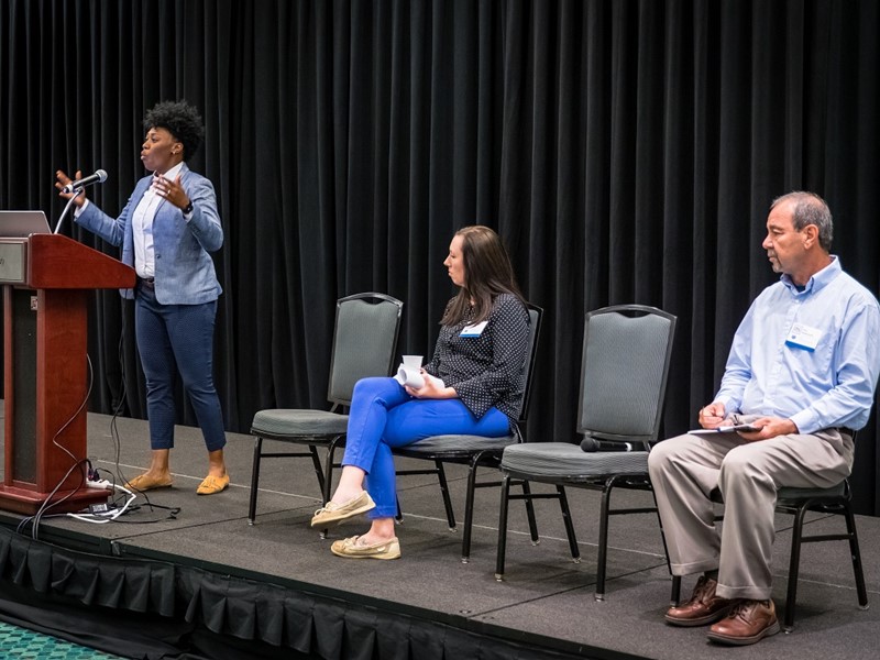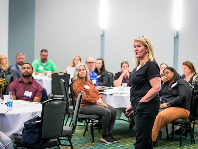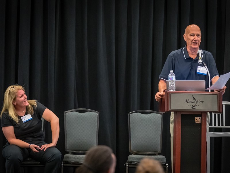 Early Friday morning – only a few hours after the countless rock, country and blues bars scattered across the city’s Lower Broadway district gave their last call – PbS staff, coaches and coordinators reconvened at Music City Center for breakfast and training. Dr. Jennifer Pealer, an Associate Professor in the Department of Criminal Justice and Criminology at East Tennessee State University, presented research about how working with families of young offenders can reduce the likelihood of reoffending by 20-52%. She emphasized the value of engaging loved ones and the critical importance of involving primary caregivers in juvenile justice programs. The morning concluded with a question-and-answer session with Stephen, a young man who formerly resided in a PbS participating facility. Employed full-time and, as of recently, a homeowner, Stephen spoke to Kim about the challenges he faced during reentry, as well as the keys to his success – two of which happened to be the Scholarship and Reentry awards that he earned from the PbS Education and Employment Foundation.
