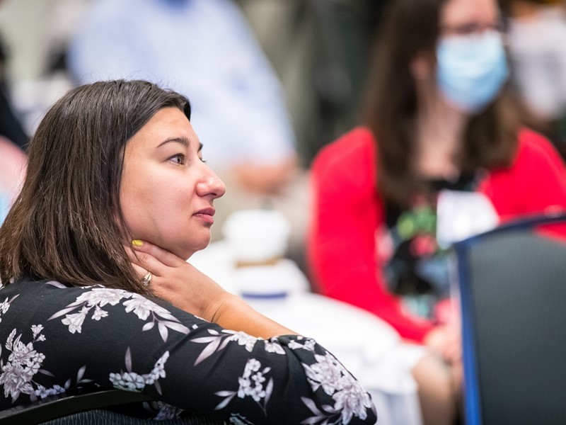 Following hours of collaborative efforts, Agency Coordinators and guests headed back to the Omni Hotel for the much awaited PbS Awards Night dinner. Among those recognized and celebrated were the 2020 and 2021 PbS Barbara-Allen Hagen Award Winners; youths and staff who earned one of the 2021 PbS Education and Employment Foundation Employment Matching, Scholarship or Reentry Awards; and the 2021 Kids Got Talent finalists. The undisputed star of the evening was the opening and closing performer – Tim of Green Hill School in Chehalis, WA, the Solo Winner of the 2021 PbS Kids Got Talent contest. Tim’s original songs – sung in Spanish and accompanied by guitar playing – elicited a standing ovation from the crowd, witnessed by his biggest fan seated in the front row – his mom!